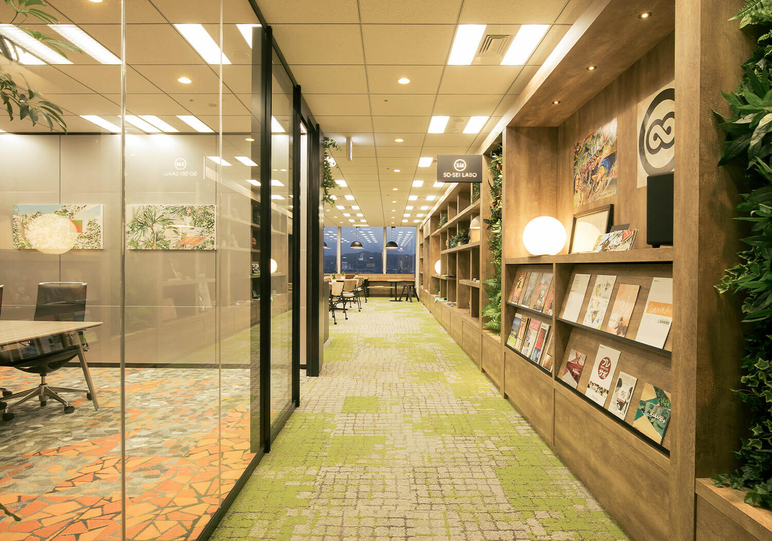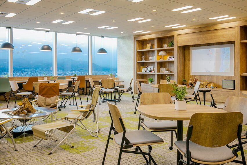 - 従来の教育機関のイメージにはない、開放的でリラックスできる空間づくりが特徴です。さっぽろ創世スクエアの最上階にオープンした新オフィス「3.14SO-SEI LABO」は、人と人との交流によって新たなイノベーションを生み出すためのクリエイティブスペースです。