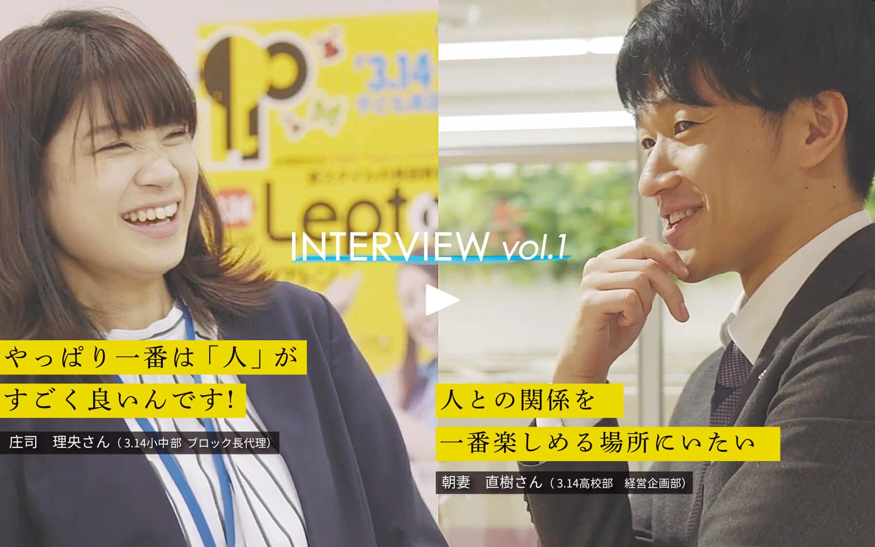 社員と学生講師が、それぞれの働き方について語ったインタビュームービーです。入社の経緯や仕事内容、どんな想いで働いているのか。動画だからこそ伝わる3.14コミュニティーグループのリアルを是非感じてください!